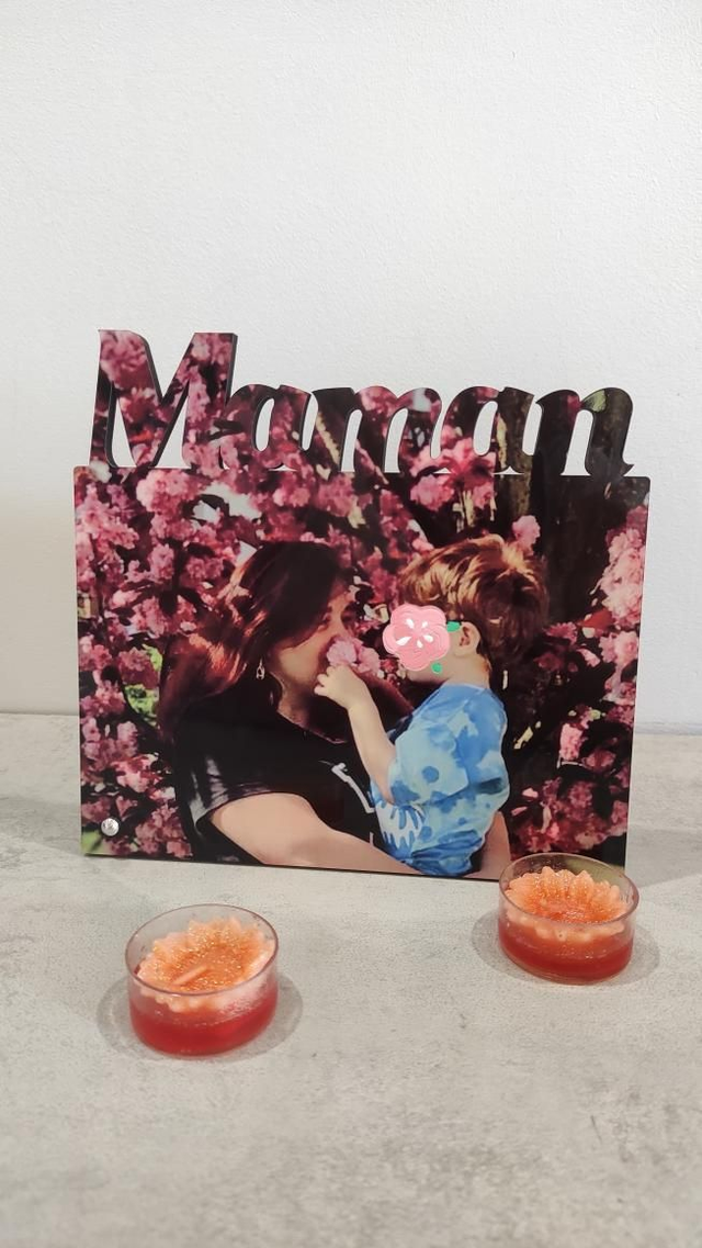 Panneau photo avec message en MFD avec revêtement brillant.